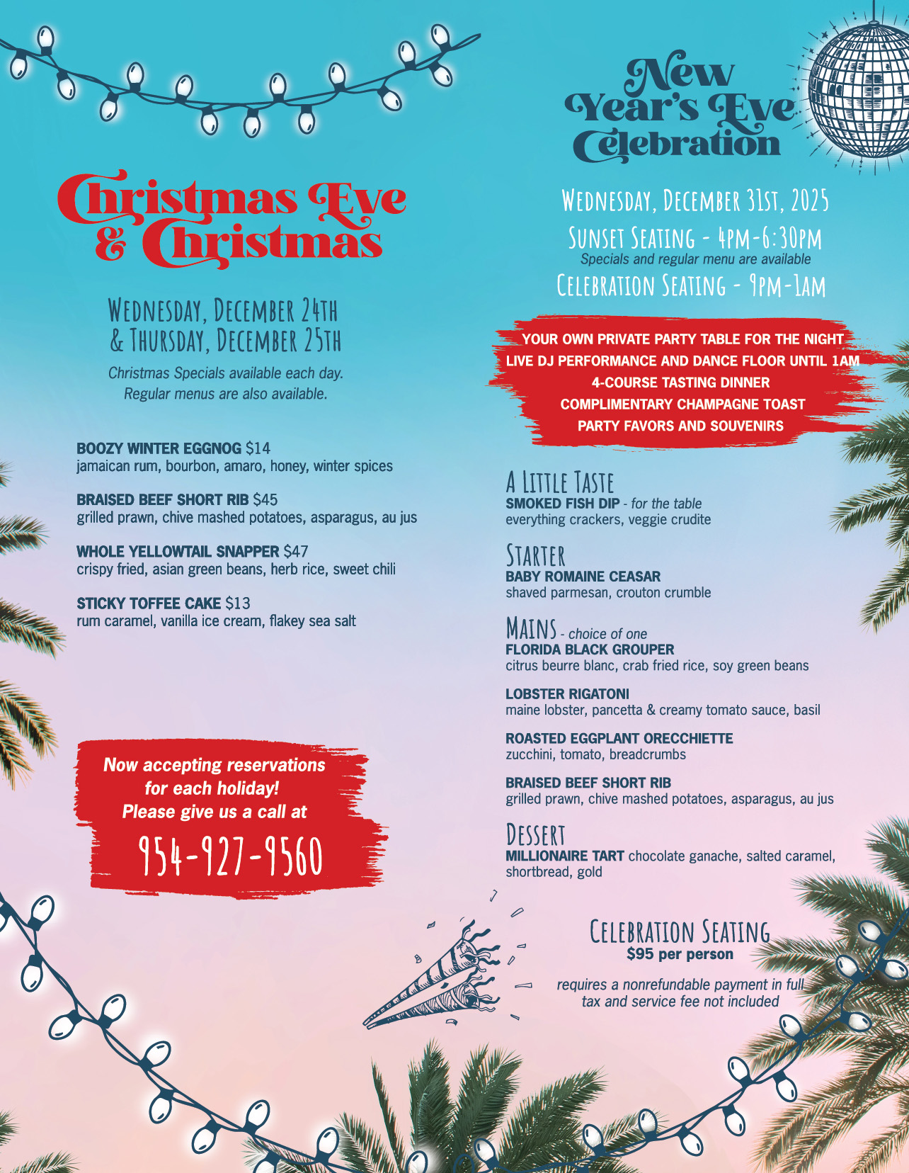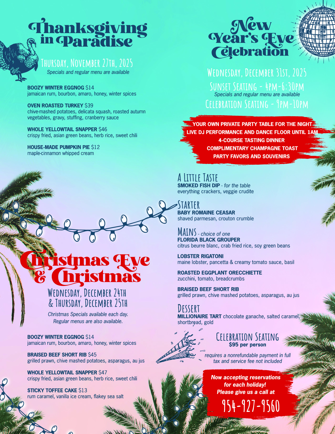 Make your reservations now: 954-927-9560